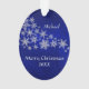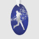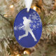 Este adorno de vacaciones de bonito hará un maravilloso regalo de mantenimiento para cualquiera que ame el béisbol! Cuenta con una batería de silueta de plata en plena oscilación contra un rociado de copos de nieve de plata. Todo está colocado sobre un fondo azul intenso. La parte posterior del ornamento tiene el mismo spray de copo de nieve plateado con el texto personalizado encima y debajo.