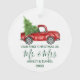 La caligrafía moderna describe nuestra primera Navidad como Sr. y Sra. - Ornamento del Camión Rojo Vintage de color de agua - Texto verde del bosque