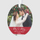 Moderno guión Minimalista simple de caligrafía de Mr. y Mrs. Heart Bride y Groom Boda foto ornamento con copos de nieve de vuelta. Rojo.