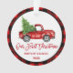 Guión de pincel moderno, Camión Rojo Vintage de color de agua con árbol de Navidad, primer ornamento rojo de la primera pareja de Navidad