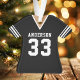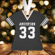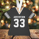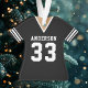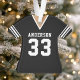 Ornamento de Camiseta de Fútbol Equipo Deportivo Uniforme Negro. Este ornamento de camiseta de fútbol es perfecto para cualquier persona que juegue deportes escolares o ame ver deportes. Personalice este diseño personalizado con el nombre de su equipo y número de camiseta.