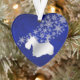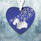 Este adorno de vacaciones de bonito hará un maravilloso regalo de recuerdo para cualquiera que ame un Terrier escocés! Cuenta con una silueta de plata, imagen de perro escocés frente a un rociador de copos de nieve de plata ornamentados. La imagen se coloca sobre un fondo azul profundo degradado. La parte posterior del ornamento tiene el mismo fondo azul y copos de nieve, y un campo de texto para personalizar. ¡Hermoso!