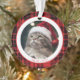 Celebrate your favorite feline in cozy holiday style with this buffalo plaid cat lover keepsake ornament. Featuring a festive red and black tartan border and a central photo of your cat in holiday attire, this ornament is the perfect way to personalize your Christmas tree with a touch of rustic charm. Add your cat’s name and the year beneath the photo to create a meaningful memento you’ll treasure year after year.