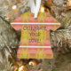¡Celebra tu amor! es un sentimiento inspirador con un fondo abstracto. Corazones suaves, viñas y ciruelas azucareras se mezclan en este diseño artesanal en medio de un patrón de motivos rosas y amarillos! Hay dos franjas blancas en la parte delantera. Este impresionante adorno es ideal para celebrar el amor, sobre todo durante las vacaciones.
