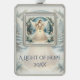 A serene celestial angel stands beneath a snowy archway of evergreens and winter florals, gently cradling a glowing lantern that spills soft golden light across her gown. Behind her, a dusky blue forest of snow-covered trees shimmers with falling flakes and tiny sparks of light, creating a peaceful, storybook atmosphere. Delicate lace details, flowing sleeves, and a halo-like crown of foliage give this winter angel illustration an ethereal, cottagecore charm that feels both nostalgic and on-trend. Soft blue and warm cream tones blend into a dreamy palette that suits spiritual holiday imagery, quiet reflection, and year-round messages of hope. This design is ideal anywhere a touch of calm, light, and heavenly beauty is desired. AI generated artwork.