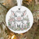 Ornamento navideño personalizado. Cerdo con mamá y lechones con flores.