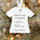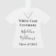 Ceremonia de la bata blanca adornada con nombre, clase, fecha y mensaje personal. Este adorno tiene la forma de una bata blanca de laboratorio.