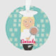 Una chica rubia y bien educada, con un gorra del chef y una cuchara y una sartén fritos, personalizada con tu nombre, perfecta para que los padres o abuelos se entreguen a un cocinero o panadero en ciernes.
