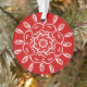 Esta mandala blanca se sienta sobre un fondo rojo brillante. El color es enérgico y cálido. Parte de la colección Avanenn Mandala.