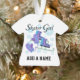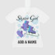 ¡Nuestras camisetas del diseño del chica del patinador, las tazas, los bolsos, las tarjetas, las almohadas, los relojes de pared, los recuerdos, las sudaderas con capucha, y otros artículos patinadores del tema ofrecen un par de patines del azul y de la lavanda y las manoplas en una secuencia rodeada por las porciones de copos de nieve y de texto hivernales que lea al chica del patinador!