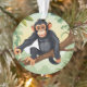Adorno Chimpanzee con su linda cola en la rama saluda