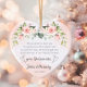 Aprecie el momento con nuestro exquisito Ornamento de la Promesa del Bautismo Padrino - una cerámica en forma de corazón Keepsake adornada con delicadas florals rosas. El regalo perfecto para la ceremonia de bautizo o bautismo de una niña.