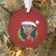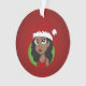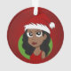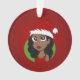 Design with an illustration of beautiful young African American woman with wavy hair and Santa Claus' hat, Christmas holidays design by Radka Kavalcova