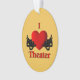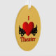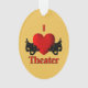 Teatro I Heart con máscaras de comedia y tragedia a ambos lados del gran corazón rojo.