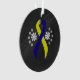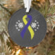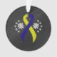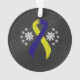 Cinta azul y amarilla con flores en forma de pizarra. La cinta azul y amarilla representa Conciencia sobre el manejo y el síndrome de Down. Octubre es el Mes de Concienciación sobre el Síndrome de Down.