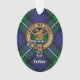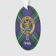 Insignia escudo de Clan Forbes rodeada por una correa y hebilla sobre el fondo del tartán. Texto personalizado en ambos lados.
