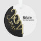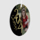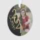 Imagen de graduación Black and Gold 2021 adorno con elegante "clase de 2021", diseño de apariencia metálica falsa. Mostrados de negro con oro 2021, a los graduados y sus padres les encantará este adorno de foto de dos lados de graduación y siempre lo valorarán. Personalice este adorno cerámico redondo con foto en un lado y texto en el otro o elimine el texto personalizado y agregue una segunda foto al otro lado.