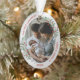 El adorno de forma ovalada tiene un marco plateado clásico adornado con plantas de Navidades y cinta para mostrar tu propia memoria especial de tu recién nacido. El brillante y luminoso borde plateado rodea tus fotos. El conjunto, lleno de vegetación y cinta de seda, se completa con un ambiente alegre de temporada. Coloca fácilmente tu propia foto memorable en lugar de la foto de la plantilla, así como el nombre y el año para hacer tus propias fotos, ¡y envíala a tu familia y amigos para celebrar la primera Navidad del bebé! H Ver la colección en esta página para encontrar más adorables adornos de vacaciones. (H) Si desea cambiar el estilo de letra, color o ubicación del texto, simplemente haga clic en el botón "Personalizar más adelante". (H) Si necesitas ayuda o tienes alguna petición especial sobre este diseño o cualquier otra en mis tiendas, por favor siéntete libre de contactarme a través del "VENDEDOR DE CONTACTO" ¡y estoy encantado de ayudarte! H