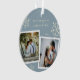 Ornamentos de navidad fotográfica para recién casados, en azul y blanco, con las palabras "primera Navidad como señor y señora" y 2/2 fotos (delante), mientras que la parte posterior presenta una plantilla multifoto con 4 imágenes y corazón monogramado, con color editable. Fácilmente personalizar con el año, monograma inicial y fotos favoritas.