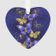 Composición de lujosas mariposas de zafiro y joyas de oro sobre fondo de textura azul.