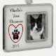 Corazones rojos y una impresión de la pata. Puede ser personalizado para un gato o un perro con la imagen y un texto de su opción.