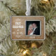 Este marco de adorno navideño presenta un fondo rústico de burlap y el texto que dice: Primera Navidad como Sr. y la Sra. 2014. El año es personalizable. La entrada incluye un fotograma de personalizable para que añadas tu foto de boda favorita.