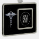 Adorno Con Marco Símbolo médico de Caduceus plateado sobre negro