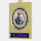 Este adorno de conservas de vacaciones muestra tu propia fotografía dentro de un marco de bonito de copos de nieve purpurinoso de oro sobre un fondo azul real. Un segundo marco circular en un patrón dorado ornamentado lo hace único y especial. La parte inferior tiene el texto personalizado en oro sobre un fondo azul. ¡Hermoso para los recién casados!