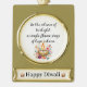 Diya de Devotion Ornament Una diya luminosa resplandece dentro de un portaobjetos dorados ornamentados, su calor sagrado de fundición de llama a través de un tapiz de flores pintadas a mano. Las joyas y los patrones intrincados brillan como bendiciones, mientras que las motas doradas bailan a través del aire como oraciones susurradas. Esta imagen evoca el alma del Diwali, una celebración de la luz triunfando sobre la oscuridad, la belleza, la gratitud y el eterno ritmo del renacimiento. La cita que la acompaña ("En el silencio del crepúsculo, una sola llama canta de esperanza renacida") impresa al revés, profundiza la resonancia emocional, ofreciendo una reflexión poética para llevar adelante el espíritu del festival.