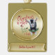 PERSONALIZAR ESTE ornamento de Navidad - Adorable retrato de una cabra de enano nigeriano con Navidades verdes, heces y bayas, un arco rojo y mistletoe - con un adorable texto de caligrafía que dice: Navidades Deseos y Besos de Cabra Bebé todo en un fondo adorable de oro - remover el fondo para revelar blanco o elegir cualquier color de fondo que te guste del recolector de color personalizar - Perfecto la amante de las cabras en la familia - no se sorprenderán de ver esta singular cabra de los Navidades originales en su mañana Navidades de los árboles de Navidad. Un original ©goatlady GetYerGoat™.