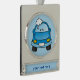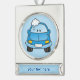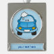 Adorno Con Rótulo Plateado Auto azul con burbujas