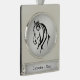 Sencillo dibujo de una cabeza de caballo en negro sobre plata. Añadir nombre y/ o fecha