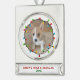 Este adorable ornamento de honor de foto de cachorro de Navidades incluye una hermosa y brillante cadena de luces de Navidad enmarcando la fotografía de su perro en un círculo festivo. Personalizar tu propio mensaje en la parte inferior de rojo para un colorido regalo de vacaciones. Personaliza la primera Navidad de tu cachorro con tu familia.