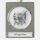 Este encantador ornamento vacacional muestra un arco de secuelas plateadas sobre un fondo radiante adornado con puntos y salpicaduras de pintura de plata y bronce. Esta decoración inspirada en el arco de coqueta aportará un toque de sofisticación a cualquier árbol de Navidad. El mensaje Felicitaciones lo hace adecuado también para un boda, pero se puede cambiar si se desea.