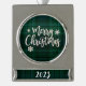 Adorno Con Rótulo Plateado Feliz Navidad 2023 Green Plaid