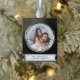 Adorno Con Rótulo Plateado Foto personalizado Primer Navidades con tono azul