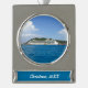 Feche este ornamento que muestra un barco de cruceros de la clase de la libertad atracado en el puerto de Philipsburg para un ornamento agradable del recuerdo de la familia.