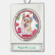 Adorno Con Rótulo Plateado Navidad sonriente rojo y Corgi blanco