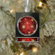 Adorno Con Rótulo Plateado Navidades Copos de nieve dorados con fondo rojo