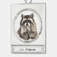 Adorno Con Rótulo Plateado Nombre Personalizado Fecha de Cute Raccoon Brillan