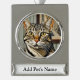 Mascota Banner Ornament - Tono plateado Celebra recuerdos familiares con este elegante banner adorno para las vacaciones. Cambie fácilmente la foto y el nombre para personalizar para su mascota. Una hermosa cinta de plata facilita la visualización de este fantástico aguijón en tu árbol año tras año. Dimensiones: 2,4" l x 1,95" w; espesor: 0,08" Ornamento metalizado dorado Impresión impermeable sellada con un revestimiento resistente a UV Cinta dorada incluida.