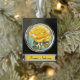 Beautiful memorial ornament with faux stained glass yellow rose with sky blue background. Customize the back with custom greeting, name and dates.