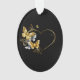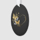 Marco dorado en forma de corazón, decorado con oro, joyas y mariposas blancas sobre fondo negro.