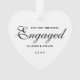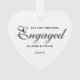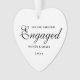 El primer Navidad personalizado Engagement Heart Ornament hace una idea de regalo perfecta. Ambos lados del adorno en forma de corazón están diseñados con un fondo blanco. El elegante texto es "nuestra primera Navidad comprometida" con el moderno y simple tipo de letra negro y escritura manual. El año personalizado y los nombres de la pareja están en la zona inferior. Haga clic en la opción personalizar plantilla e introduzca nombres y año.