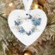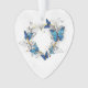 Corazón dorado, con flores morfo realistas azules y blancas. Morfo. Diseño con morfo de mariposas azules.