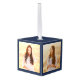 Conmemorar el logro de la graduación con un adorno navideño de personalizado 3 cubos de graduación fotográfica. Las imágenes y la redacción de esta plantilla son sencillas para el personalizar. (IMAGEN PLACEMENT TIP: Una manera fácil de centrar una foto exactamente como quieres es recortarla antes de subirla al sitio web de Zazzle.) Incluya cualquier cita inspiradora favorita, proverbio motivacional, nombre y título escolar, felicitaciones, gracias mamá y papá, u otro mensaje de su elección. El diseño azul marino y blanco incluye una bonita funda de mortero, una elegante caligrafía de escritura a mano, una elegante tipografía minimalista moderna y dos fotos de su elección, como imágenes de la ceremonia de graduación o de la ceremonia de graduación. Hace una idea de regalo para mantener la graduación. ¡Felicitaciones al graduado!