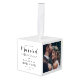 Celebrar una alegre primera festividad como recién casados con un collage de fotos de personalizado 3 "Nuestros primeros Navidades casados" adorno de cubo. Todos los textos e imágenes de esta plantilla son fáciles de personalizar. (IMAGEN PLACEMENT TIP: Una manera fácil de centrar una foto exactamente como quieres es recortarla antes de subirla al sitio web de Zazzle.) El diseño en blanco y negro incluye caligrafía de escritura a mano moderna, elegantes nombres de tipografía y año, y tres imágenes de su elección. Este toque de boda único añade un toque elegante a la decoración de la casa de la pareja recién casada. Feliz Navidad y felicitaciones al nuevo señor. ¡Y la Sra.!