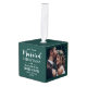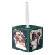 Celebrar una alegre primera festividad como recién casados con un collage de fotos de personalizado 3 "Nuestros primeros Navidades casados" adorno de cubo blanco y verde. Todos los textos e imágenes de esta plantilla son fáciles de personalizar. (IMAGEN PLACEMENT TIP: Una manera fácil de centrar una foto exactamente como quieres es recortarla antes de subirla al sitio web de Zazzle.) El diseño verde y blanco del bosque incluye caligrafía de escritura moderna escrita a mano, elegantes nombres de tipografía y año, y tres imágenes de su elección. Este toque de boda único añade un toque elegante a la decoración de la casa de la pareja recién casada. Feliz Navidad y felicitaciones al nuevo señor. ¡Y Sra.!
