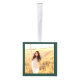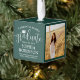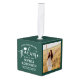 Conmemorar el logro de la graduación con un adorno navideño de personalizado 3 cubos de graduación fotográfica. Las imágenes y la redacción de esta plantilla son sencillas para el personalizar. (IMAGEN PLACEMENT TIP: Una manera fácil de centrar una foto exactamente como quieres es recortarla antes de subirla al sitio web de Zazzle.) Incluya cualquier cita inspiradora favorita, proverbio motivacional, nombre y título escolar, felicitaciones, gracias mamá y papá, u otro mensaje de su elección. El diseño verde y blanco del bosque incluye un bonito gorro de tabla de mortero, una elegante caligrafía de escritura a mano, una elegante tipografía minimalista moderna y dos fotos de su elección, como imágenes de la ceremonia de graduación o imágenes de la ceremonia de graduación. Hace una idea de regalo para mantener la graduación. ¡Felicitaciones al graduado!
