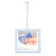 Guión de pincel moderno Nuestros primeros abuelos de Navidad Watercolor Vintage Blue Truck con el árbol de Navidad Foto Cubo de Ornamento - Fondo azul. 3 Fotos.